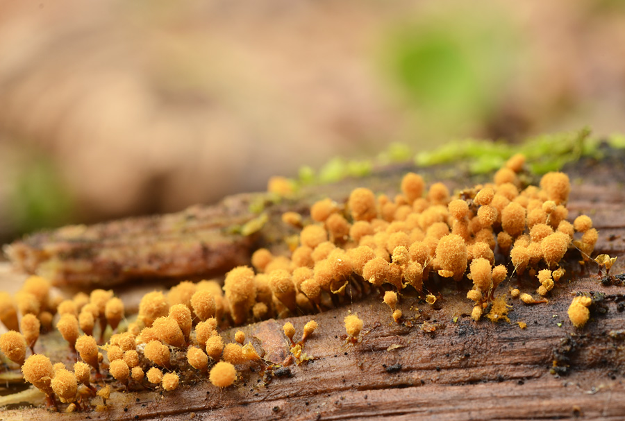 Миксомицеты, но без плесени. Судя по чашечке, присутствию капиллиция и произрастанию на древесине, похоже на трихию - Trichia sp. в стадии спороношения.