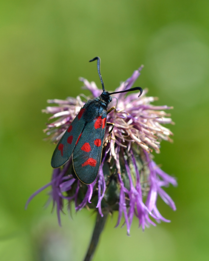 Zygaena centaureae Fischer de Waldheim 1832 - локальный вид, известный из степей России, Украины и Казахстана. В Центре Европейской России самые северные находки вида были из Калужской, Тульской и Рязанской областей. Однако в последние годы ареал значительно расширился – до Центрального Подмосковья, что подтверждается приведенными фотографиями.
