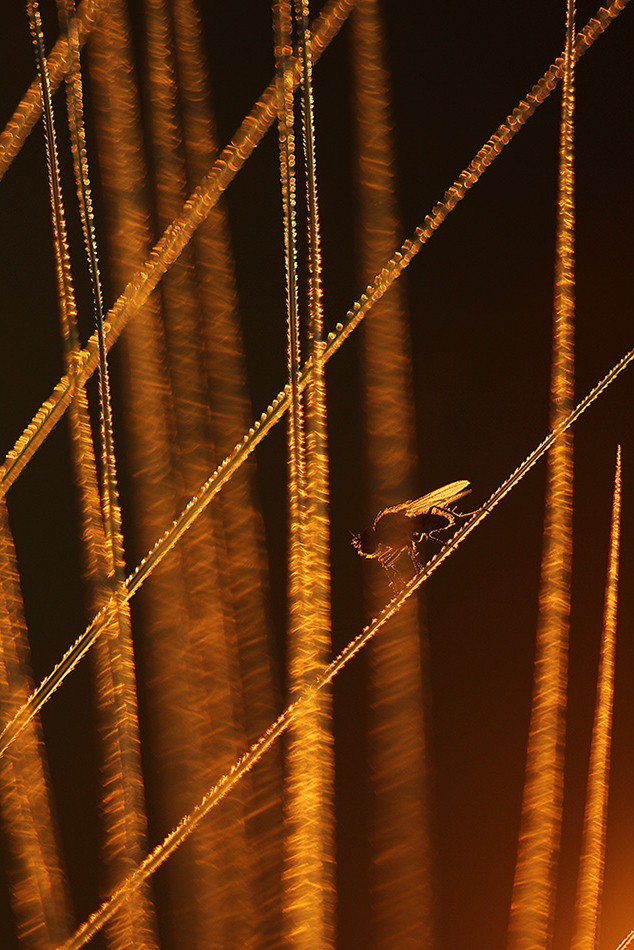 Мушка уселась. Пыталась снять ее без помех, но не успела, она улетела.