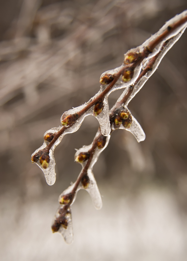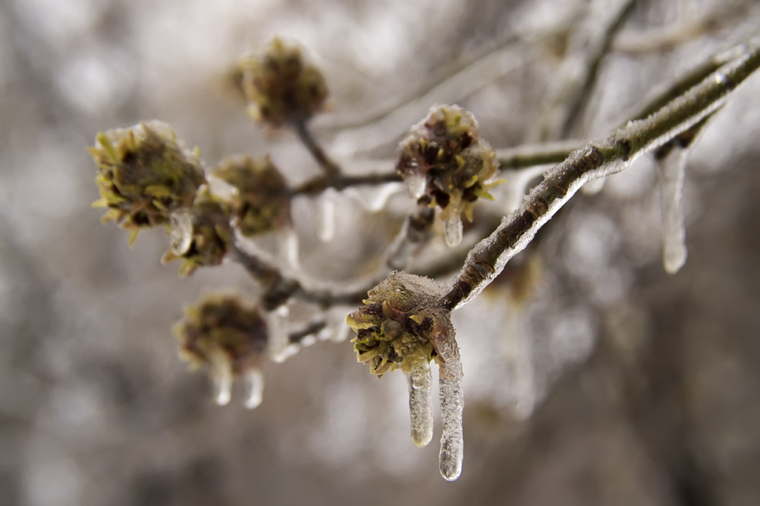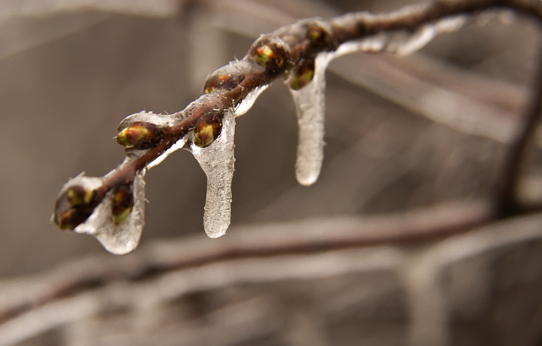 Вчера улицы Харькова были почти пусты. Целый день шел противный холодный дождь, иногда превращавшийся в мокрый снег, дул пронизывающий ветер. И это после +18 пару дней назад. Вот он - капризный март А сегодня утром все деревья стояли, как хрустальные. Слоем льда покрылись даже начавшие распускаться почки.
