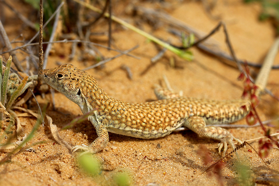 Игорь Оз: Не факт, что это Acanthodactylus beershebensis. В Израиле несколько видов из этого рода. И по этой фотографии этого не определить. Есть фотография в полный рост, хотя бы плохого качества и нерезкая?