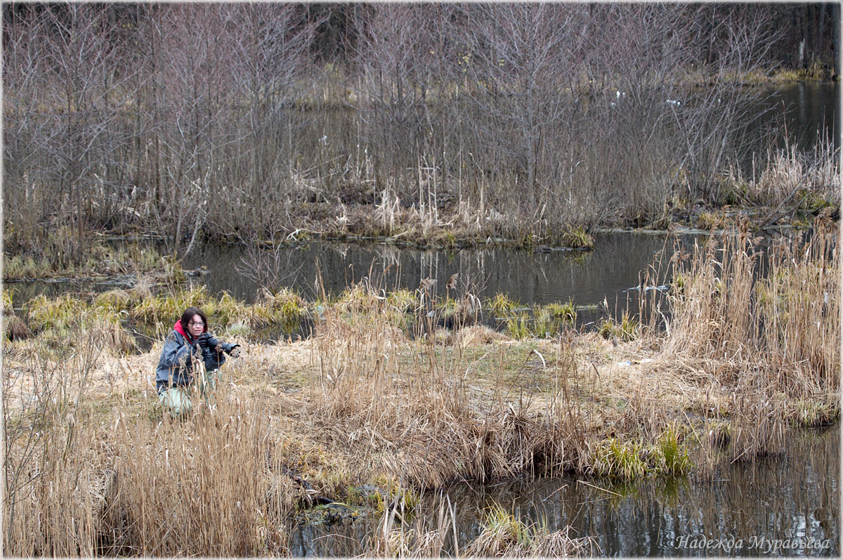 Птичкам хорошо - у них перья! А что делать людям?! Люди постепенно, но неуклонно подмерзали. Сначала съели Светины бутерброды. Не помогло. Потом достали из недр рюкзаков предусмотрительно прихваченные с собой перчатки и утеплились. Не полегчало. Потом пытались отвлечься, меряясь объективами.... На душе стало теплее.