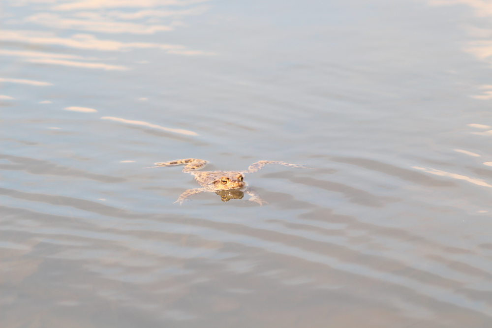 Через пару секунд жабеныш всплыл, а вода почти успокоилась. Он явно был разочарован - ведь счастье было так близко!