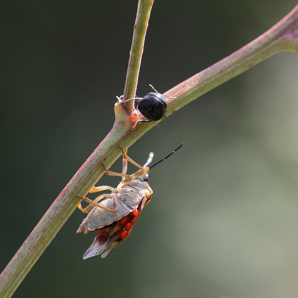 Бедолага- клоп, измученный клещами, суетился и не находил себе места ... Жаль его. Не жилец!