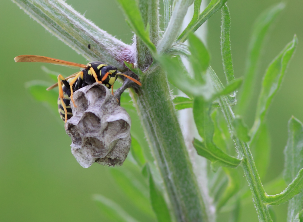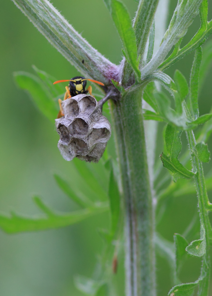 Учитывая мои «фундаментальные познания», я решил использовать не свои «научные наблюдения» за поведением ос, а сопроводить свои снимки текстом, взятым из научно-популярных статей в интернете. На вопрос «Как оса строит гнездо» Яндекс выдал кучу источников, из которых я и выбрал понравившийся мне материал.