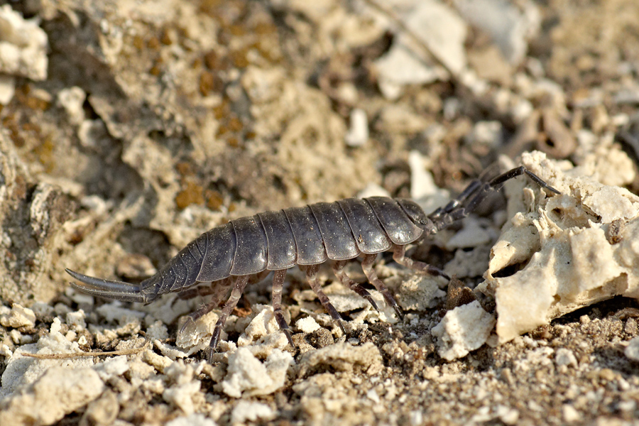 У нас на горе Горячая, созданная природой из отложений минеральных вод за миллионы лет, обитают мокрицы. Особенно весной их очень много, на квадратный метр штук по 30. Вот я и решил немного их поснимать. С утра когда солнце начинает пригревать они выползают из щелей травертина и становятся довольно активны. Их размер довольно крупный до двух сантиметров.