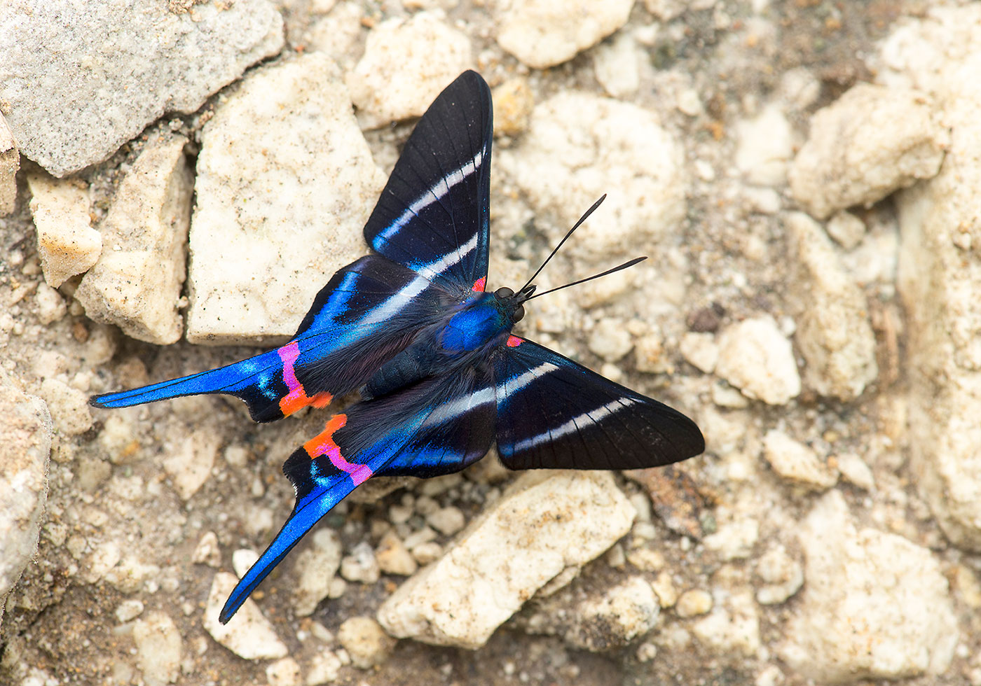 У некоторых, а может даже у многих, вероятно, существует такое мнение, что стоит попасть в тропическую страну, а там за каждым углом насекомыши в очередь на съёмку толпятся. По-настоящему же мне пришлось лет 5 разведывать, чтобы оказываться в нужном месте в нужное время. Да и то, похоже, без толку уже эти сведения. То ли климат меняется, то ли человек похозяйничал, а стало бедновато, а этот год и вовсе беда. Возвращаюсь я как-то не солоно хлебавши с Терреро, где "добрые" люди как раз все цветочки покосили. Глядь- у грязной придорожной лужи "погорельцы" толпятся. Причём не только заурядные виды, что на прошлой карточке (шашечницы), а щёголи, что в другой раз поискать придётся, да не факт что попадётся хоть один: "краснокромочник" Biblis hyperia (потрёпаный, но всё ж), "флажок" Temenis laothoe, "морячок" Dynamine dyonis (это всё из Нимфалид), а на закуску- Риодиниды: блёстка ярко-голубая Lasia agesilas и изысканный мечехвост Rhetus arcius.