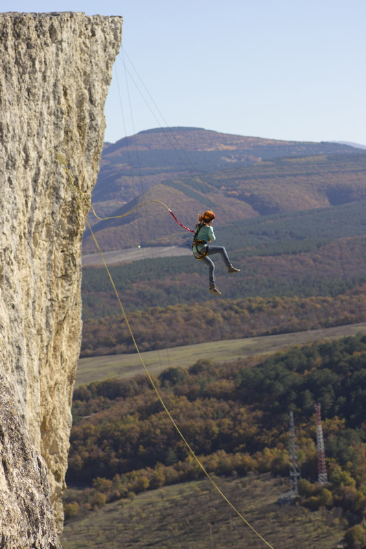 Эту симпатичную ящерку я фотографировал на самом краю многосотметрового обрыва в Качи-Кальоне,что за Бахчисараем.Она явно провоцировала меня тоже свеситься за край пропасти,то выглядывая из-за камня,то прячась..