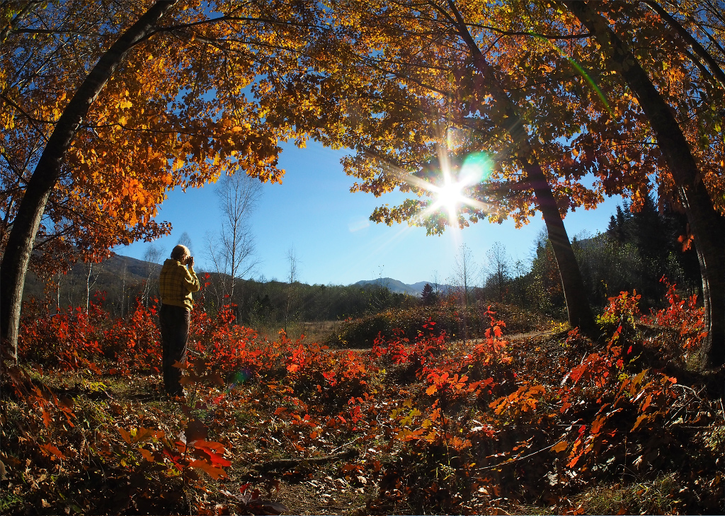 С макро как-то сразу не задалось. Поэтому бросились снимать горы, деревья, листья, бегущих лошадей, друг друга... Посмотрели потом, прослезились: ну все не так! Ну а как, как все это передать? ЭХ!