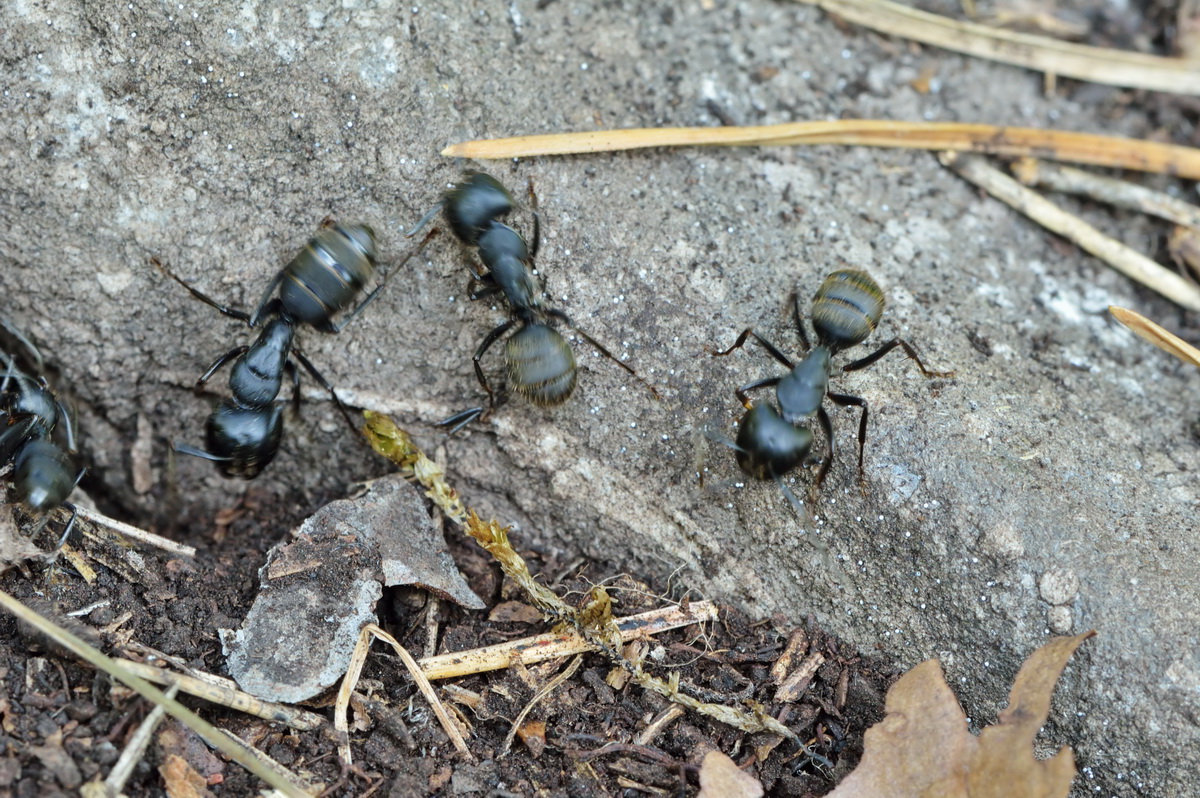 Будучи в туристическом походе я с фотоаппаратом на руках наблюдал за муравьями. Они под плоским камнем похоже обустраивали себе жилье. Мелкие муравьи, думаю «строители», бегали бегом, выносили разный мусор из под камня и откидывали подальше от входа. Среди этих работяг я видел несколько крупных муравьев с большими головами – «солдат», которые медленно ходили около входа и нечем не занимались. У меня к фотоаппарату был прицеплен макро объектив и я начал снимать работу муравьев. В какой-то момент я вижу как два, три крупных муравья из под камня выволокли мелкого муравья - работягу. И перед моими глазами совершили казнь, растянув его за конечности в разные стороны. Я видел как муравей извивался от боли. В итоге «солдаты» оторвали ему конечность и уволокли под камень. Я сделал несколько кадров и был потрясен увиденным.