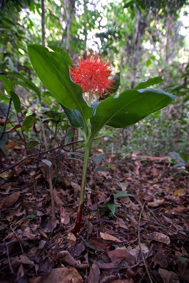 Одно из немногих цветущих растений в сухой сезон: Гемантус Scadoxus cinnabarinus, семейство – Амариллисовые.