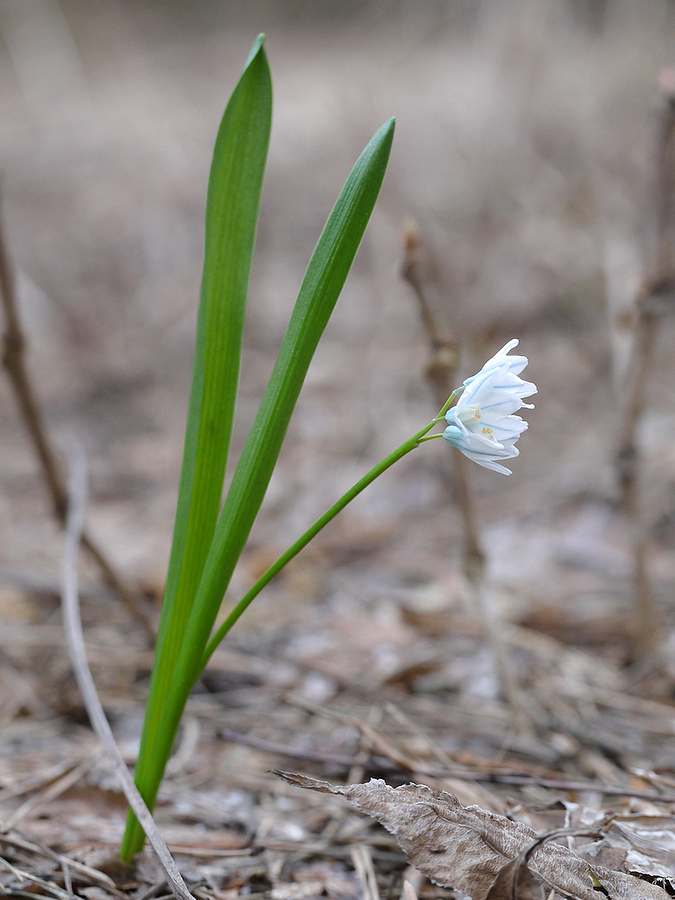Сегодня обнаружил на просеке в нескольких сотнях метров от дома странную пролеску. Сделал несколько снимков, как говорят в Украине,"шоб було". Дома решил разобраться. Оказалась, что не пролеска, а пушкиния пролесковидная - Puschkinia scilloides. Родина - Малая Азия, Кавказ, Иран. Предполагаю, что данное растение попало в лес с мусором, в т.ч. и садово-огородным, который неустанно вывозят в лес мои земляки.
