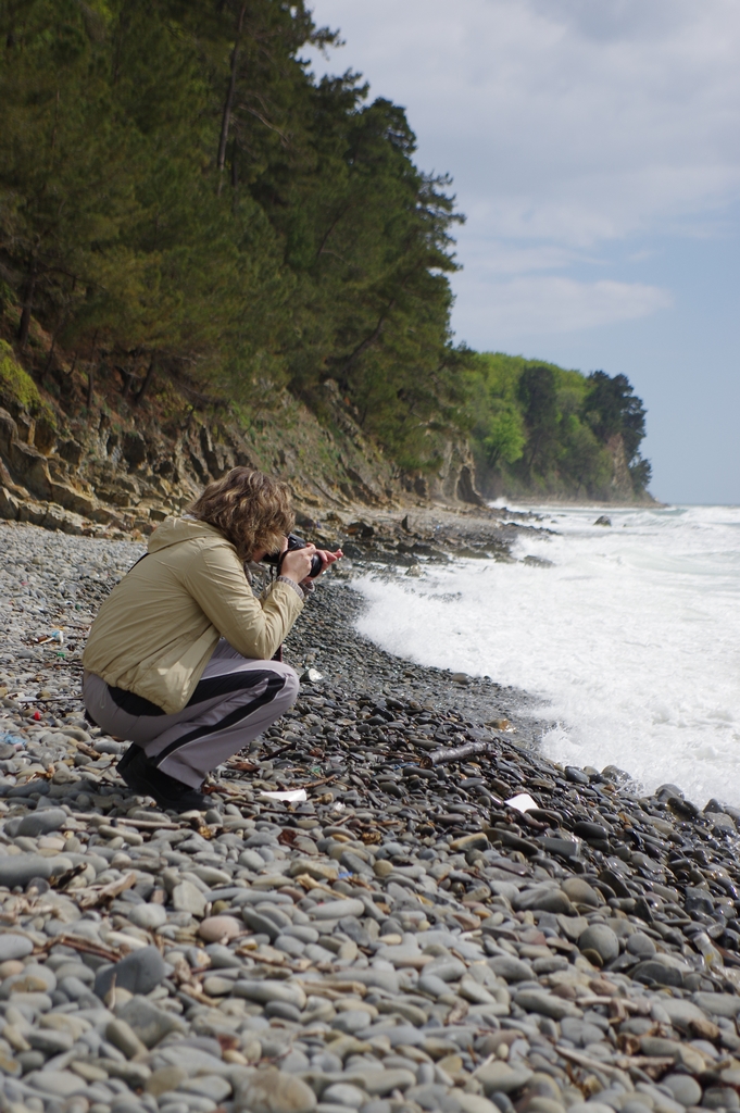 Оля, как истинный макрушник, вооружившись макросоткой начала охоту за волнами, вернее, каплями от волн!