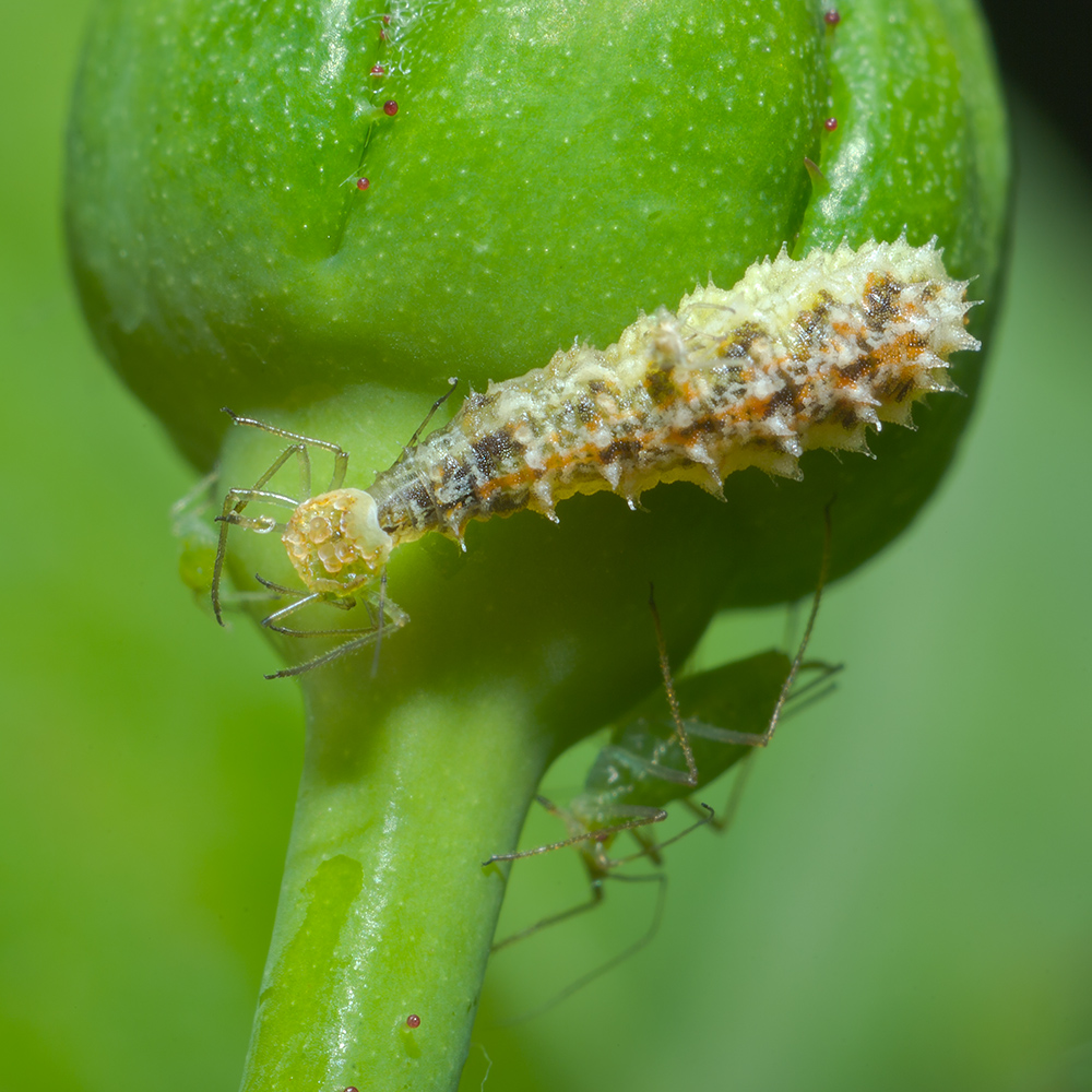 RVV: Личинка, но не златоглазки, а журчалки (Сирфиды). Кушает. Вкусно