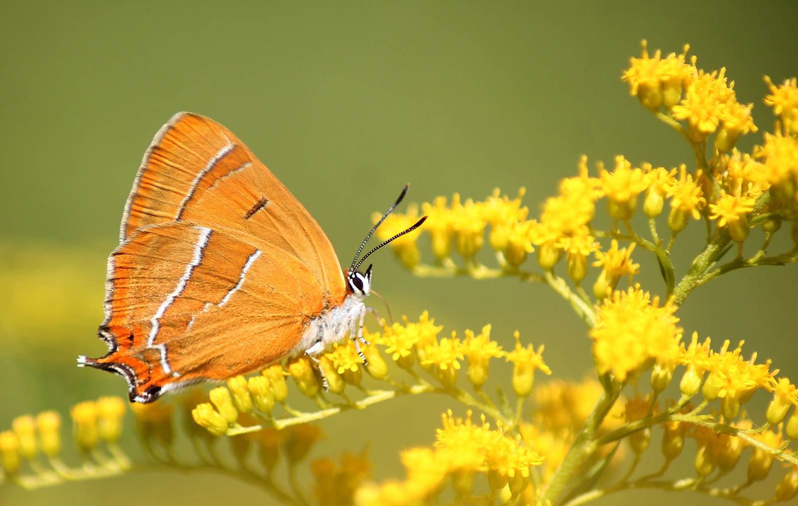 Случайно нашел бабочку, предположительно, березовый зефир. Снять с раскрытыми крыльями не удалось. Но на обратной стороне интересная "обманка" для хищников. Кстати, попадались бабочки с еще более ярко выраженной "обманкой" на обратной стороне - точной копией туловища и даже с усиками.