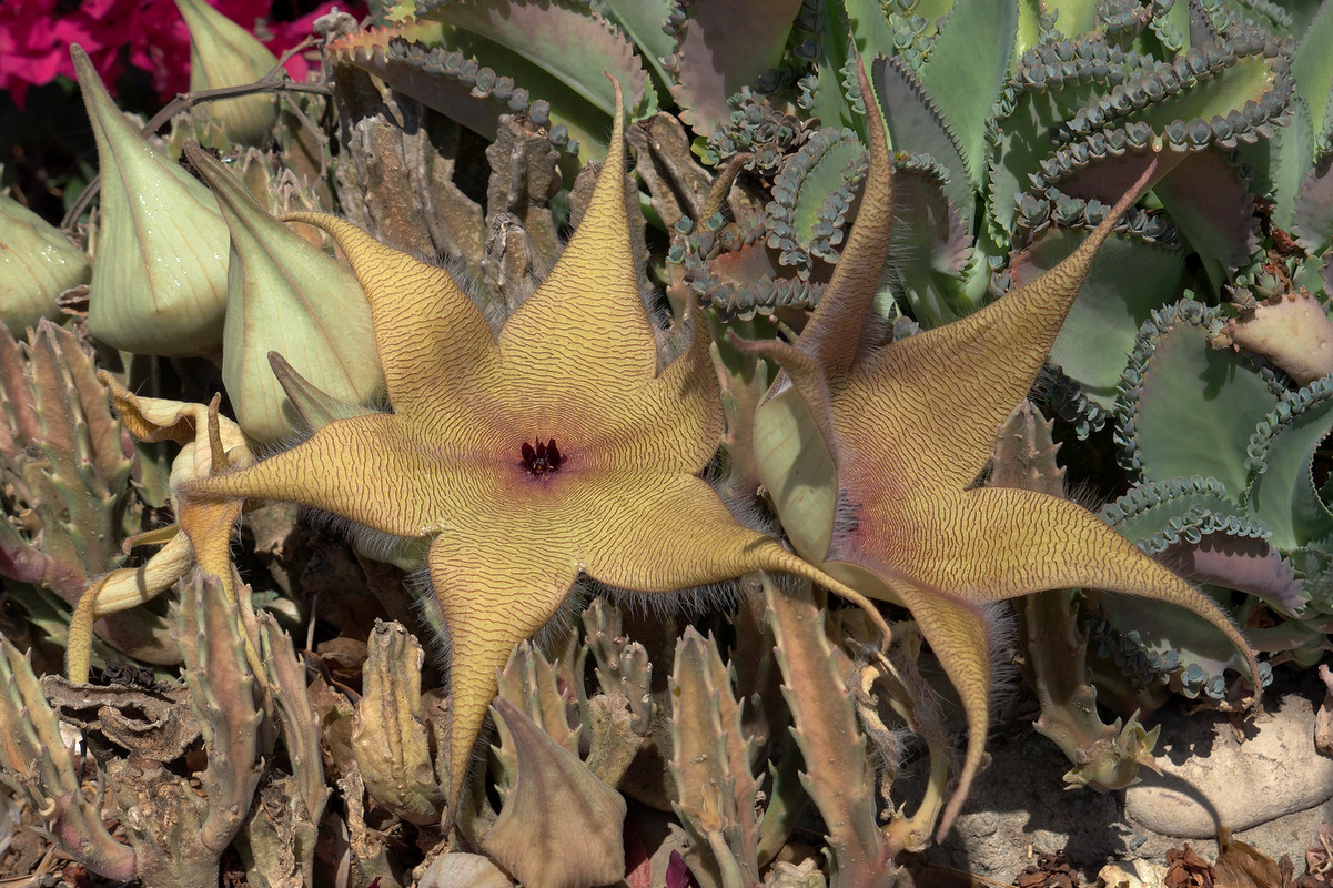 Необычные всё-таки у стапелий цветы. Прочитал, что у этого вида они, к счастью, без запаха.