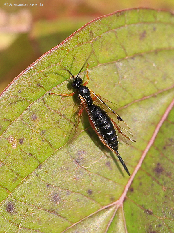 А вот и неправильно! Если по окраске вроде и похоже, то яйцеклад тут значительно длиннее. К тому же, у Apechtis вершина яйцеклада загнута вниз - посмотрите в Макроиде, вершина щитика и усы полностью - желтые. Большей же части наездников в Макроиде нет