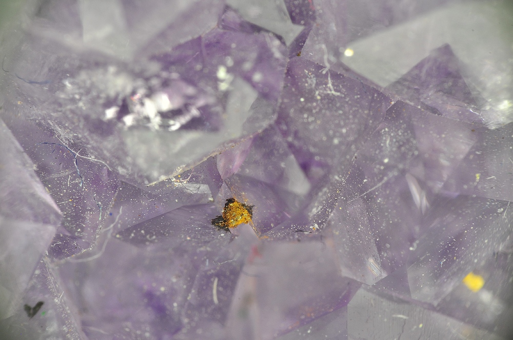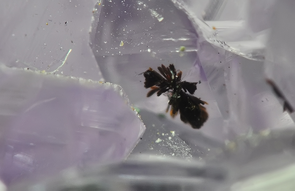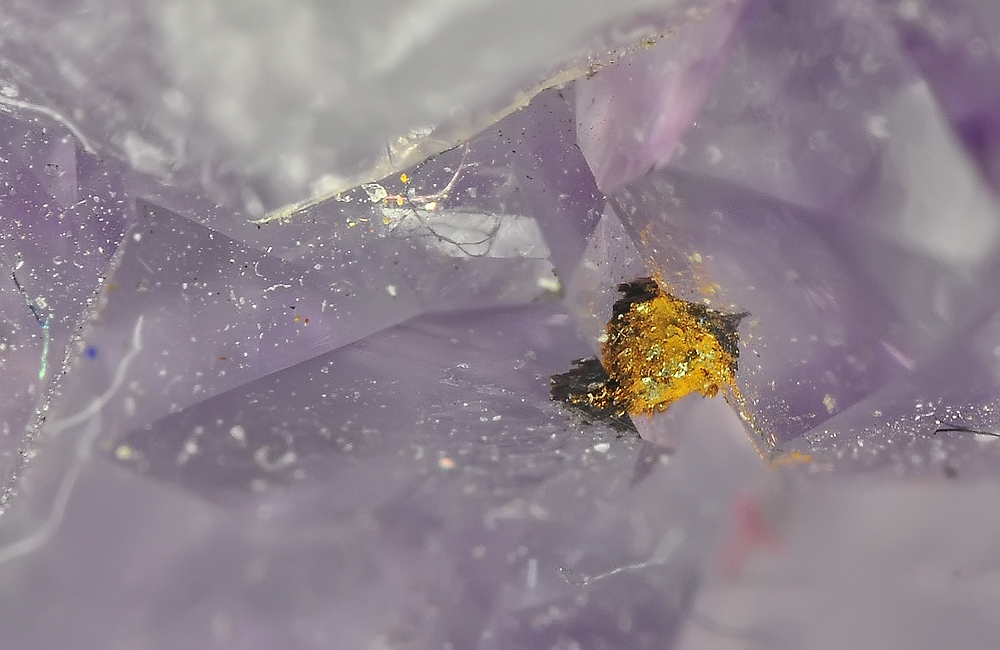 На фотографиях представлено что-то не понятное, что росло внутри кристалла аметиста. Повезло заполучить кусочек жеоды. Заинтересовали меня манюсенькие вкрапления в кристаллах. Снимал в паре с гелиосом, так как что-то оч маленькое