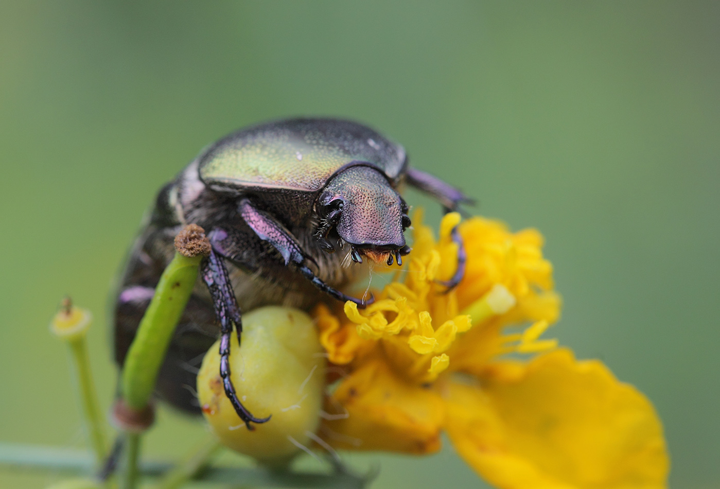 Вовсе нет! Никогда не слышал, что бронзовка - вредитель! Пусть кушает, на здоровье!