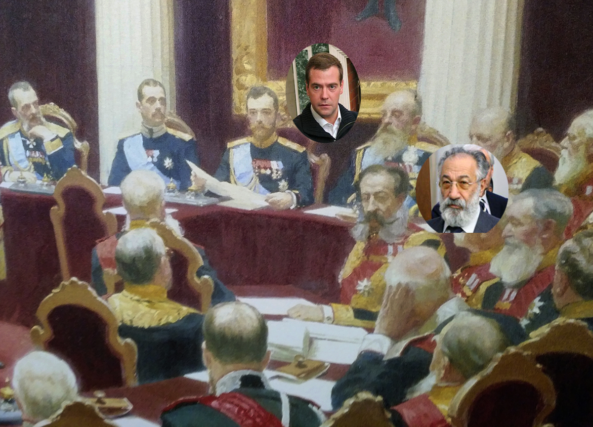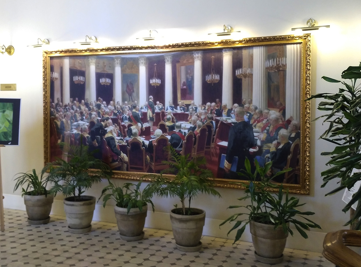8. Картина И.Е. Репина "Заседание Государственного совета в честь собственного столетнего юбилея (1901г.). Половина участников - члены РГО.