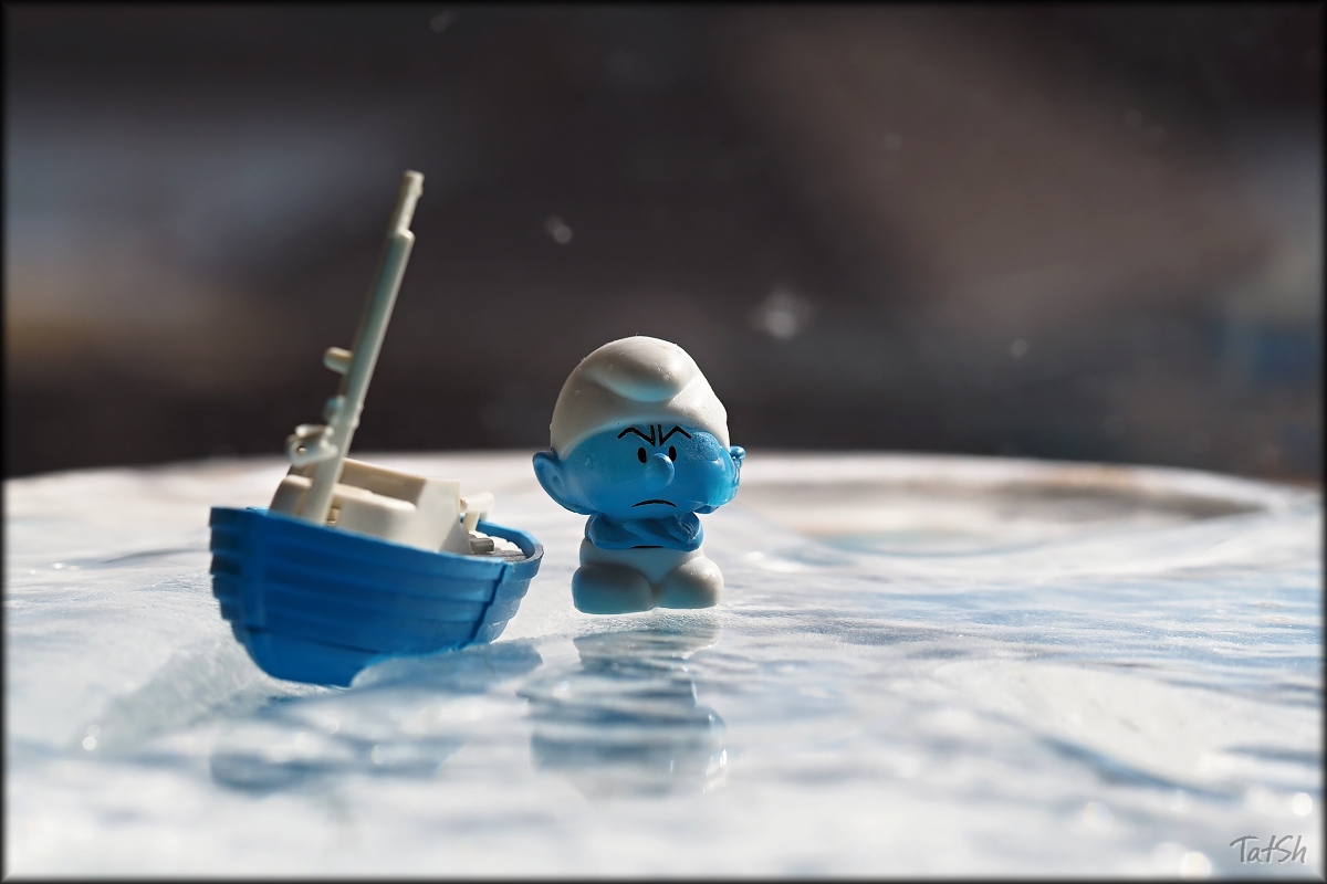 Друзья, с 1 апреля! В этот день хочется особенно повеселиться, порадоваться жизни и даже вспомнить детство. Это игрушки моего внука Артёмки, ему скоро 3 года. И пока его не было на даче, я устроила небольшую фотосессию малышам-смурфикам. Льдина - настоящая, выловленная из ведра с замёрзшей водой...