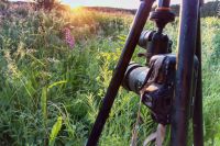 Вот как раз со светом не сложилось. При чистом небе как рассвет, так и закат резкий, за черной полосой леса. Утром темно, а потом сразу жесткий свет, вечером - наоборот. Кроме того, все эти болотные орхидеи растут в ямах. Пришлось размещать камеру за кустом молочая, искать просвет среди цветков в росе для смягчения