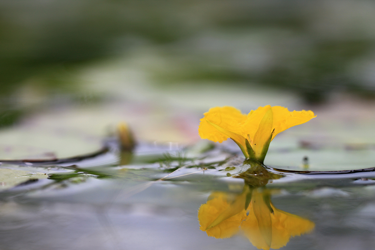 Вместе с кувшинками и кубышками попалось и это чудо - Nymphoides peltata, не гнушается северных областей, но почти везде в Красной книге. Еще бы вода была потеплее...