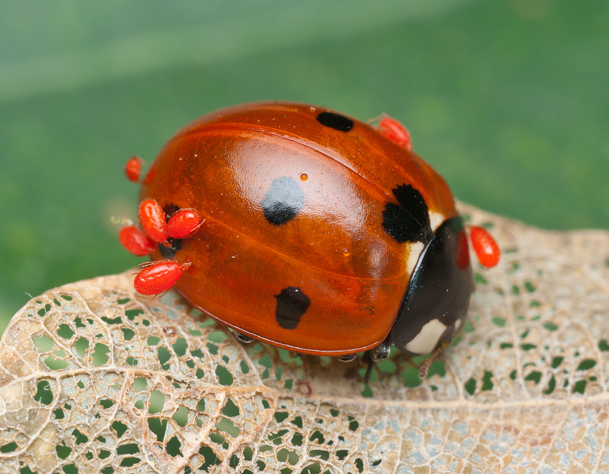 RVV: Отличные снимки. Совсем неожиданно предпочтение этих клещей находиться на гладкой поверхности прочных надкрыльев, да ещё и присосаться в таком, казалось бы, не подходящем месте! Мало того, "область седьмой точки" почему-то особо привлекательна!