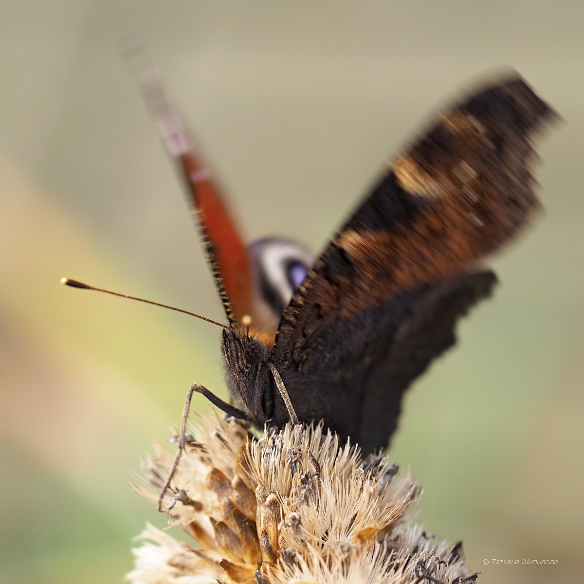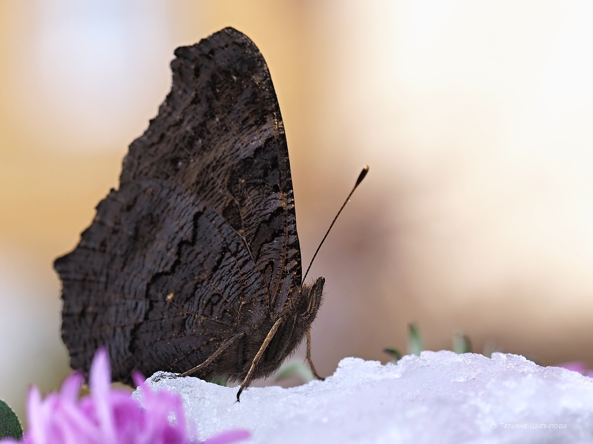 Два дня подряд у нас шёл снег. А сегодня, 28 октября, я обнаружила бабочку павлиний глаз...