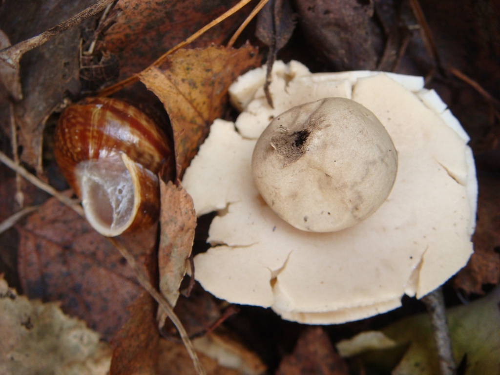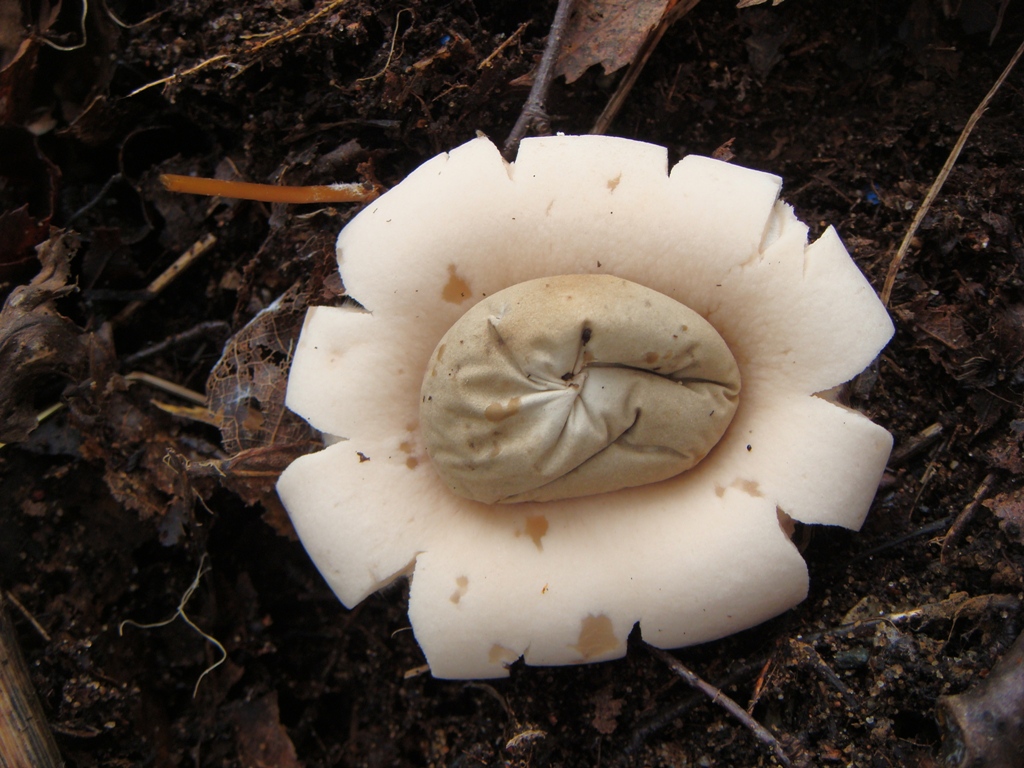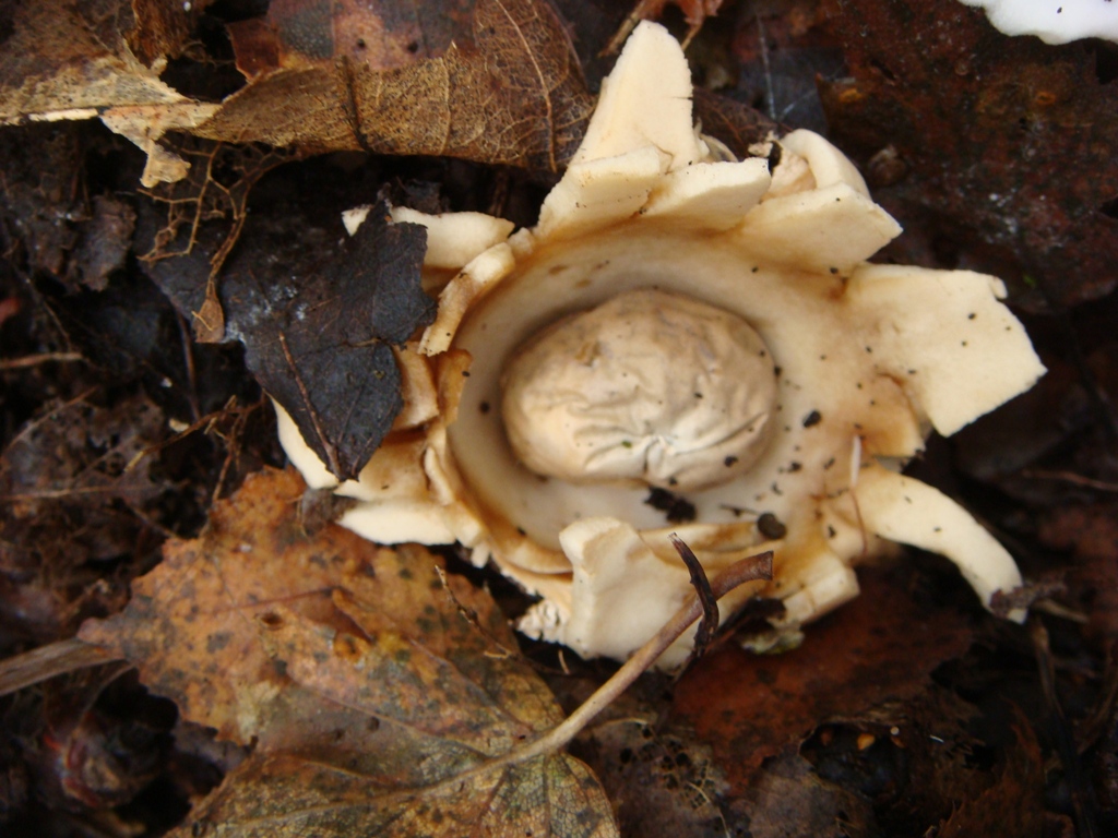 Первый раз увидела звездовик. Нашла на не большой площади несколько грибов в разных стадиях развития. Растет на земле среди опавшей листвы.