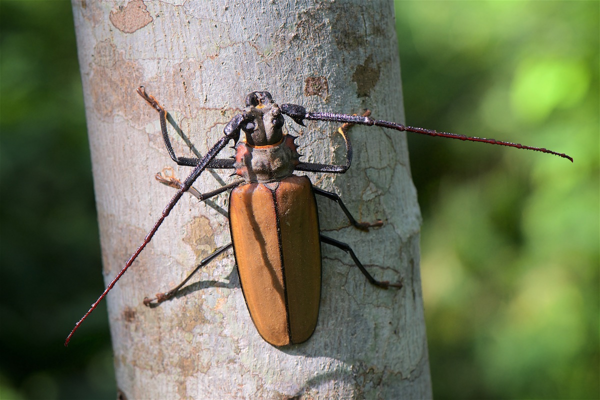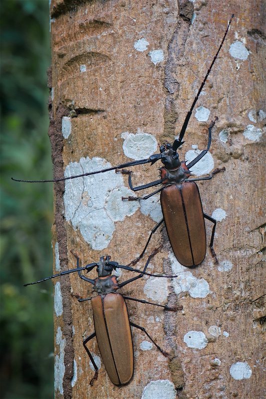 Да, этот усач заставил поволноваться, особенно при первой встрече, дама оказалась очень осторожной, малейшее сотрясение дерева, на котором она сидела, и жук отцепляется от присады и камнем падает в непролазные кусты. Но выбираться то ей нужно было, осталось только набраться терпения, сидеть и ждать Ну а как самцы с такими усами летят, это вообще песня. У самцов усы длиннее тела для того, что бы пространство вокруг себя сканировать, головой то вертеть им не очень удобно, а всем корпусом разворачиваться - долго, вот они усами и размахивают, как лучом локатора вокруг себя сканируют, если что интересное попалось, тогда и развернуться можно.