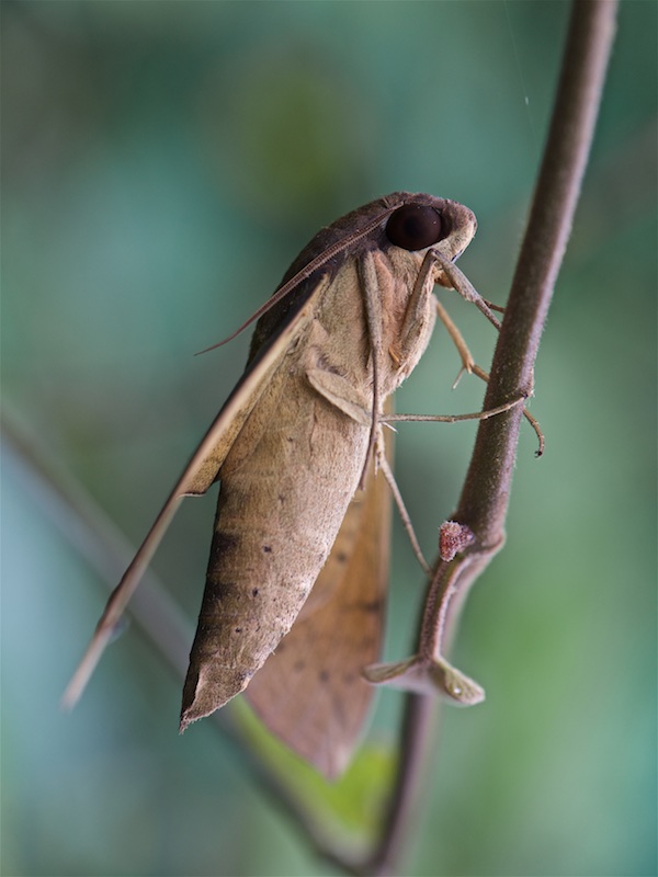 Скорее всего на снимке не папайя, так как у незрелой папайи, которая как раз зелёная, кож цк достаточно толстая и плотная. У зрелой папайи кожица оранжевого или желтого цвета, но тоже достаточно плотная, чтобы бабочка, пусть и бражник, могла ее проколоть! Скорее всего, бражник на плоде другого растения сидит. Если есть фото листьев растения - то это прояснит ситуацию с плодом