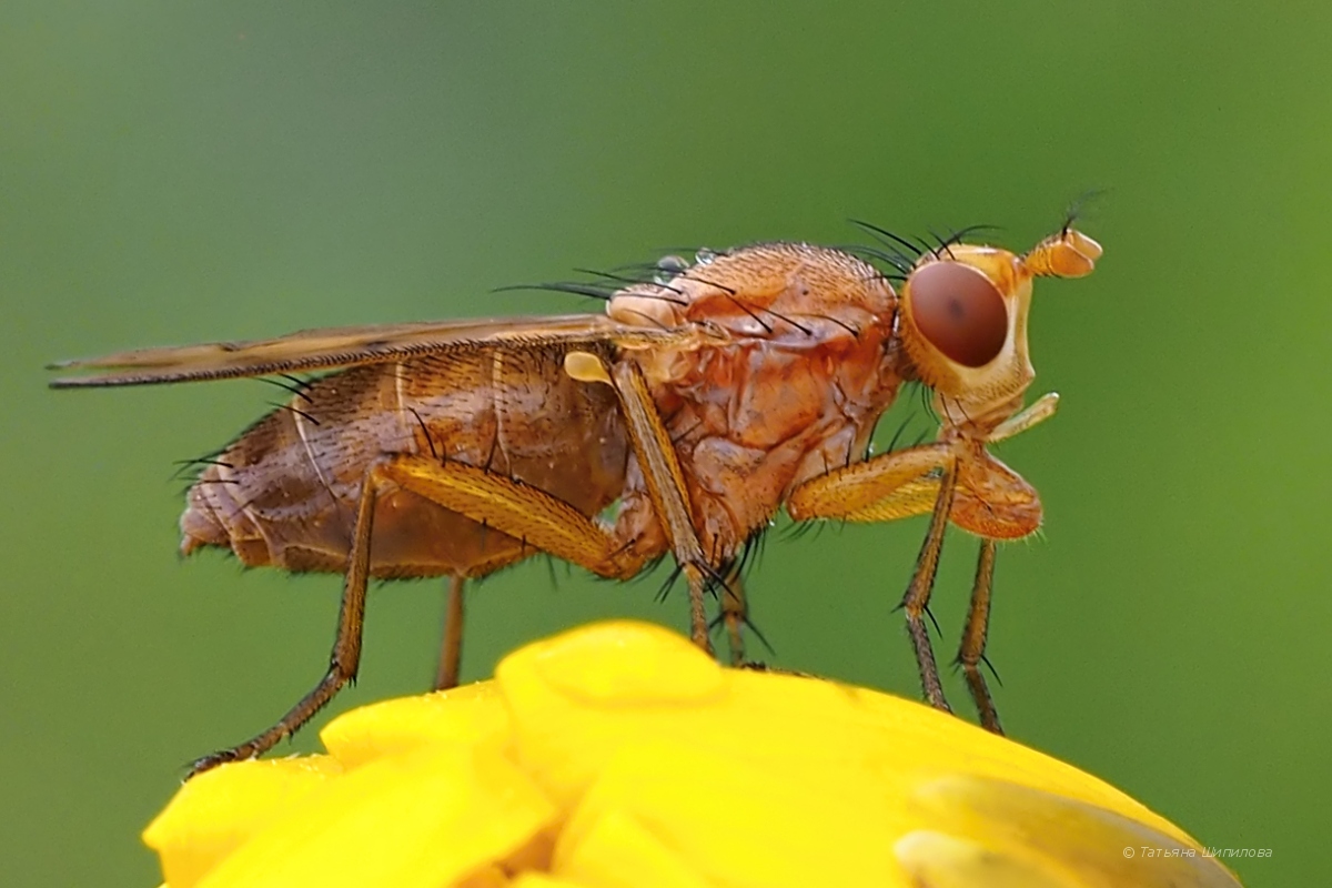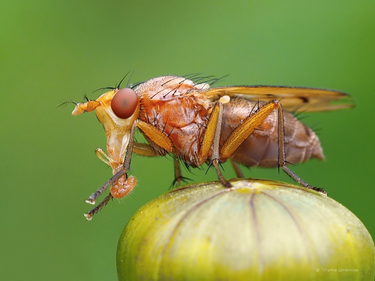 Тенница (Sciomyzidae) на бутоне кореопсиса (Coreopsis).