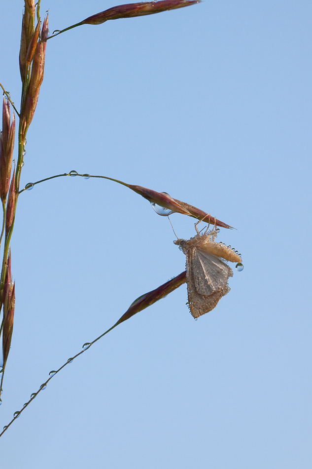 Заметил эту бабочку на травинке и сначала подумал, что она при смерти - так бессильно свисали ее крылышки и такой у нее был несчастный вид.