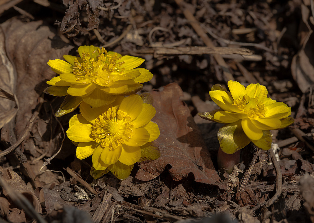 Сегодня решил прогуляться по Русскому острову. Думал может удастся снять первые адонисы. Ну, хоть один цветочек... Пошел на хорошо знакомые места, где снимал первые цветы в апреле. Не прошел и 10 шагов, как вот они - первые. Дальше-больше. Судя по "распущенности" цветов и их количеству цветы далеко не первые. Можно было начинать съемки, как минимум. неделю назад. Цветов местами просто масса. и поодиночке и мелкими группками. Сюрприз однако! Вот она наша аномально теплая зима. Даже пчелки временами встречались на адонисах. По моему прогнозу, цветы должны были появиться через неделю-две. Здорово ошибся. Как наши метеорологи прямо. Но. радости нет предела, тем не менее! У нас конечно не Крым, но и и у нас Весна. Правда, кроме адонисов ни одной зеленой травинки не встретил.