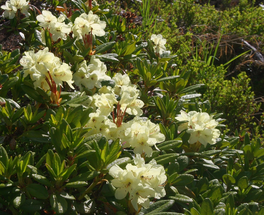 Первые цветы конца мая, встречающие путников при подъёмах на перевалы вблизи Байкала - рододендрон золотистый или кашкара. Даже после внезапного похолодания со снегом и увядания рано распустившихся цветков, появляются новые, зонтиками венчающие побеги и напоминающие издали снежные шапочки от прошедшего снегопада.