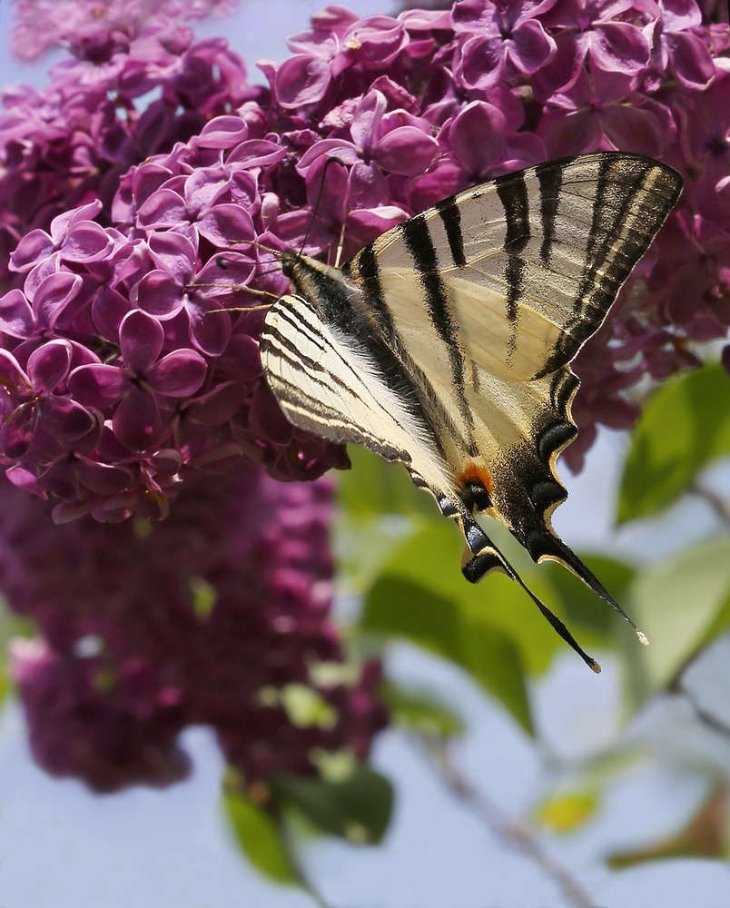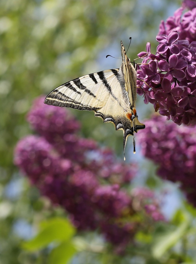 Если сады примыкают к лесным опушкам или заброшенным полям с луговым разнотравьем, то подалирий всегда прилетает на цветущие яблони или декоративные кустарники. Причём выбирает только сладкоплодные сорта и ветки наверху, обращённые к солнцу. И сирени - тоже выборочно, на обычные, "народной" селекции, не садится, предпочитая тёмно-окрашенные, типа "Сумерек" Колесникова. Возможно, лишь в тех случаях, когда есть из чего выбрать. Отцветает сирень - снова возвращается на лужайки поблизости, когда там начинается волна цветения сложноцветных. Т.е. вполне обычная бабочка для мест, которые она предпочитает.