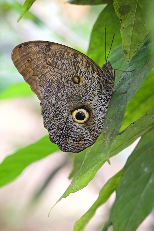 Caligo eurilochus - английское название forest giant owl, действтельно впечатляет своими размерами, а сходство с совой придают большие "глаза" на задних крыльях.