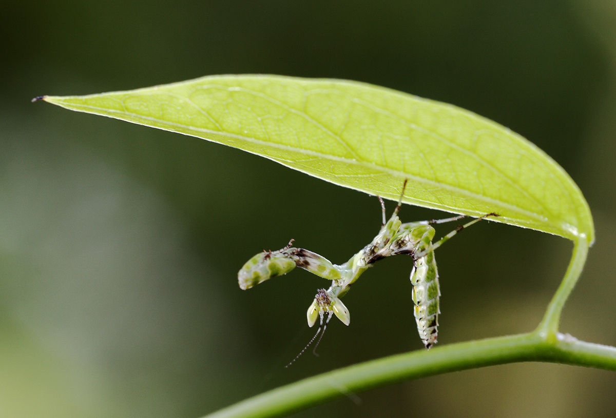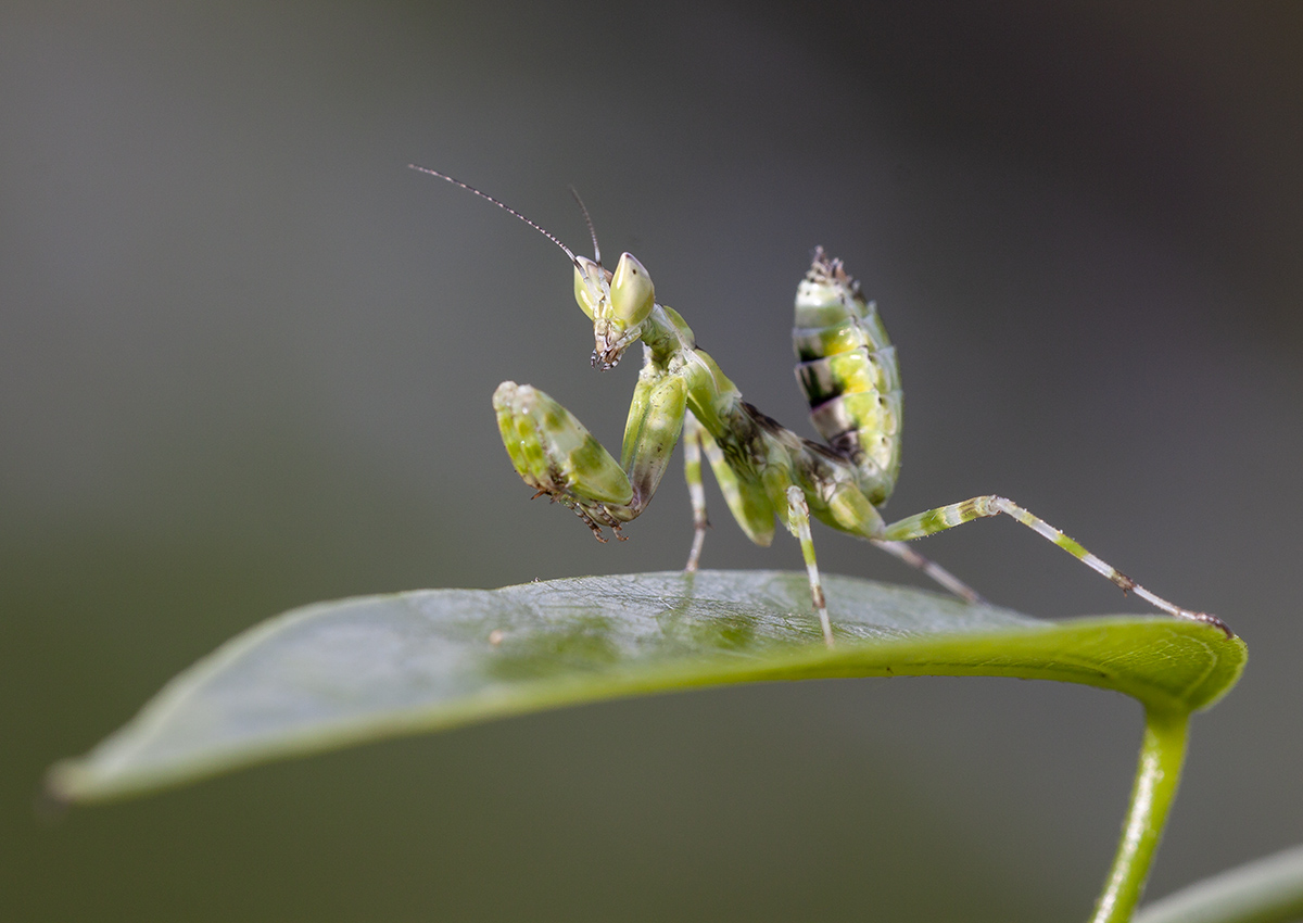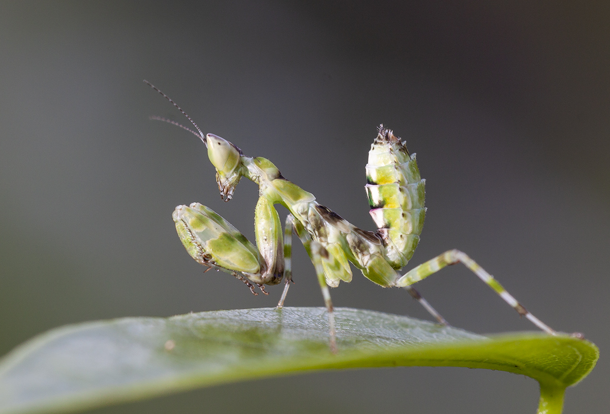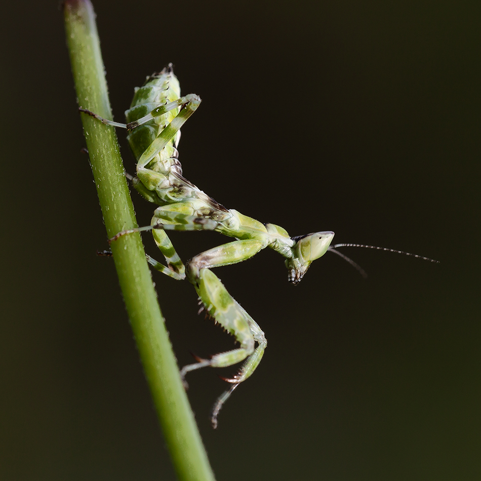 Личинка богомола демонстрирует свою стать и мускулистые руки