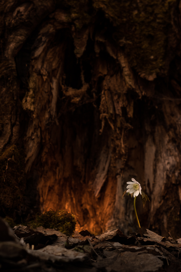 Случайно увидел цветок у вывороченного с корнем дерева. Попробовал что-то придумать