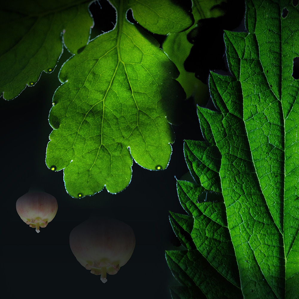 У растений есть что-то наподобие отпечатков пальцев - это отпечаток листа. Листья различаются типом жилкования, формой края, размерами, цветом и конечно же целебными свойствами. У самых древних растений, таких как папоротник, хвощ или мох, листьев с научной точки зрения нет. У папоротника аналог листа называется вайей, которая в отличие от листа имеет неограниченный рост и количество отростков. Я попробовал соединить листья разных растений в коллаже, напоминающем гербарий. Интересно было сопоставить сочетание формы древней вайи со пальчатосложным листом рябины, или как перистолопастной лист дуба сочетается с пальчатолопастным листом клена, или как перистолопастной лист чистотела сочетается с зубчатой крапивой. Каждый лист напоминает живой фрактал, растущий в ритме танца жизни.