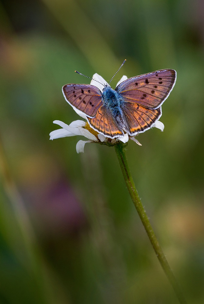Бабочка встретилась случайно, поскольку интересовал именно щавель, на котором кормятся гусеницы червонца фиолетового. Девушки у паренька не было на тот момент, наверное улетела, потеряв голову, с другим. Поэтому, решил помочь скромному парню рекламой, пока все лепестки не выщипал.