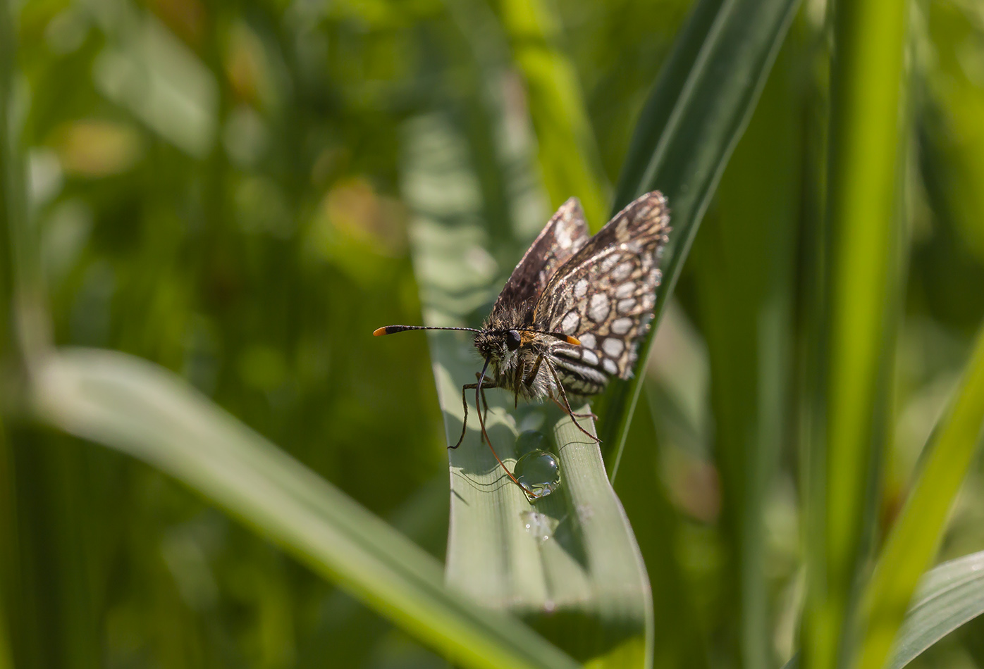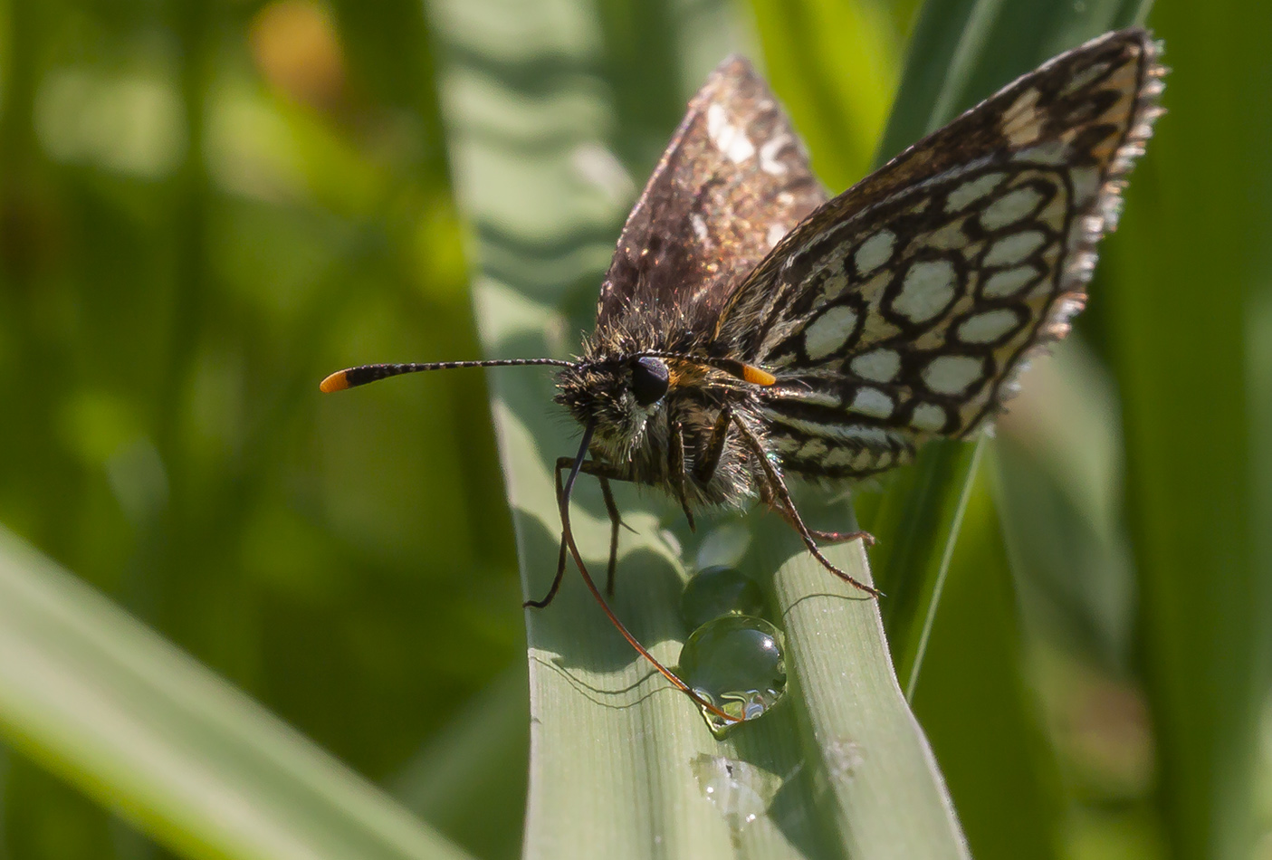 Толстоголовка утоляет жажду из капельки росы