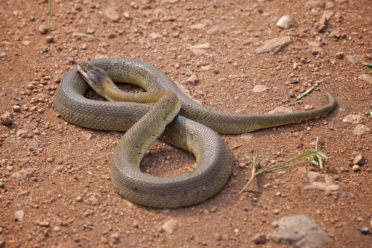 Но вдруг Бэн резко останавливает машину, в нескольких метрах позади нас на дороге лежит небольшая змея, вокруг собрались местные жители, рядом деревня. Мы бежим к рептилии, Бэн осторожно подходит, я снимаю, видно, что змея повреждена, прячет голову, видимо мотобай наехал. Бэн, рассмотрев змею, сообщает местным, что она не ядовита, это небольшой удав. Но мы понимаем, что это бесполезно, ее все равно убьют, такие здесь порядки, и не для того что бы съесть, как в Камеруне, а просто потому, что от змей исходит опасность, много ядовитых. Тогда мы решаем забрать змею с собой и выпустить в парке, я приношу контейнер для бабочек, самый большой, и мы с Бэном загоняем в него этого удава. Так в нашей Тойоте появляется новый пассажир, хорошо, что ехать всего два часа и змею успешно выпускаем в лес.
