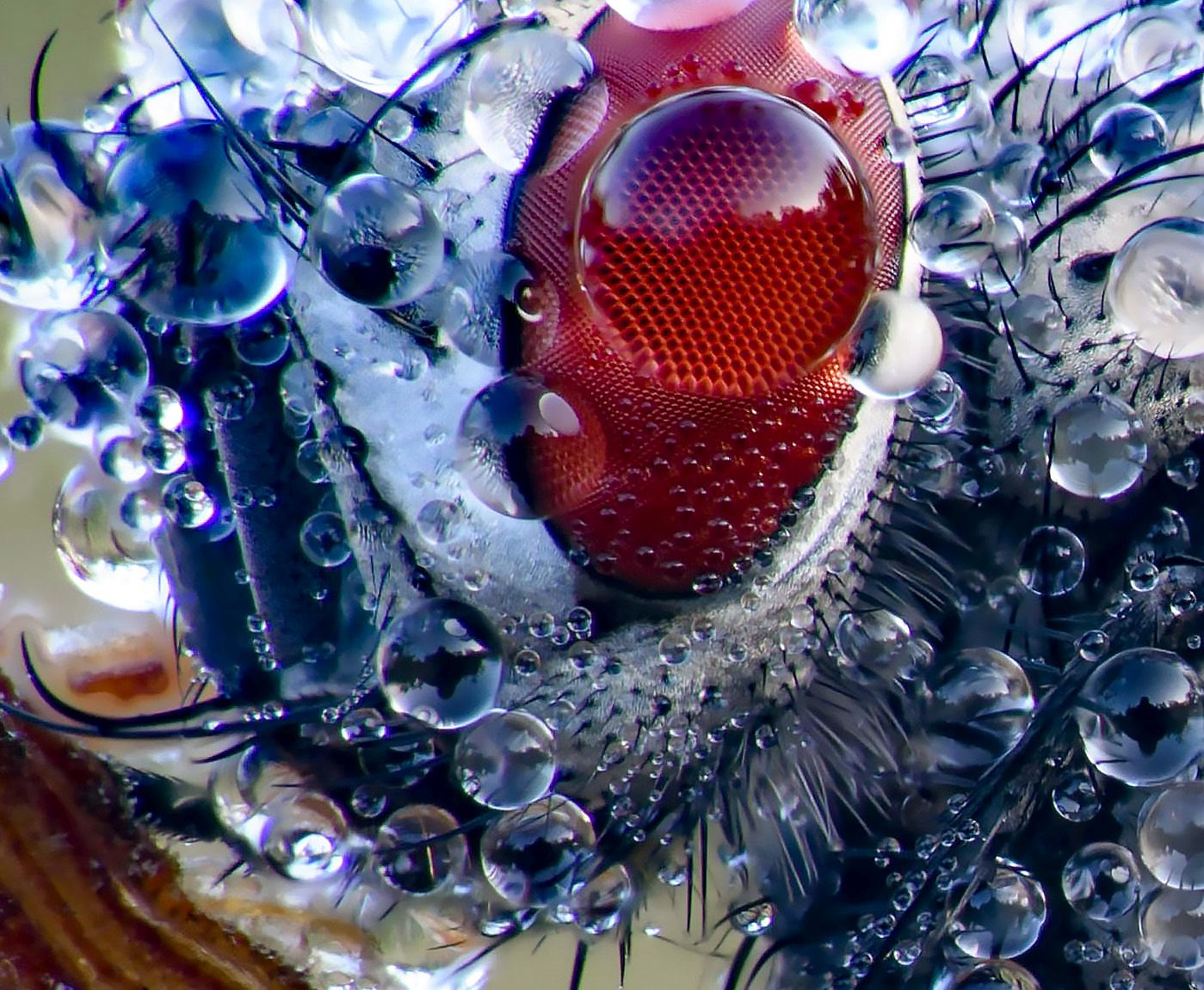 сегодняшняя Ежемуха (наверное) в росе. Без кропа. стекинг чрезмерно крупный как для меня- 45 кадров. маштаб примерно 2:1 , снято на сигма 180 мм + Raynox DCR-150