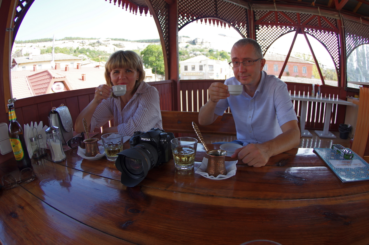 Приезжаю, значит в Бахчисарайский район, а мне Максим с Олей предлагают прокатиться в Бахчисарай, посмотреть на памятник А.С. Пушкину. Пришли - памятник, как памятник. Чо я памятников не видел?! А тут, сзади памятника красивое здание - ребята предложили - Зайдём?