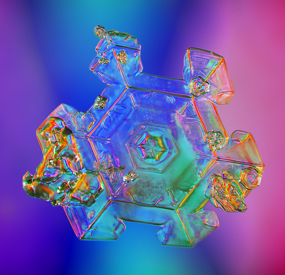Автор написал, что это всё натуральные снежинки, снятые им на Аляске, в Канаде, на севере США и... да, в Калифорнии! В горах Сьерра Невады...