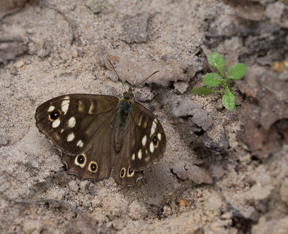 Встретить у нас краеглазку эгерию, Pararge aegeria, так же легко, как столкнуться с её живым прообразом. Бабочка считается вымершей для нашей области, а, если и летает в двух районах, то, лишь потому, что не читает Красных книг. Мне она попалась при сборе малины в саду, а, поскольку имён друг друга мы так и не вспомнили, сделал пару фоток для определения. О её редкости на тот момент, как и принадлежности к божествам, не думал, поэтому большого терпения в выжидании более приятной для глаз присады не проявил, о чём сожалею.