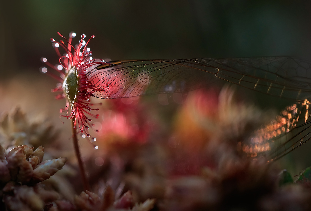 Уже публиковала http://macroclub.ru/gallery/showphoto.php/photo/282232/ppuser/5032/cat/500 подобный сюжет про стрекозу и росянку, который был снят месяц спустя.