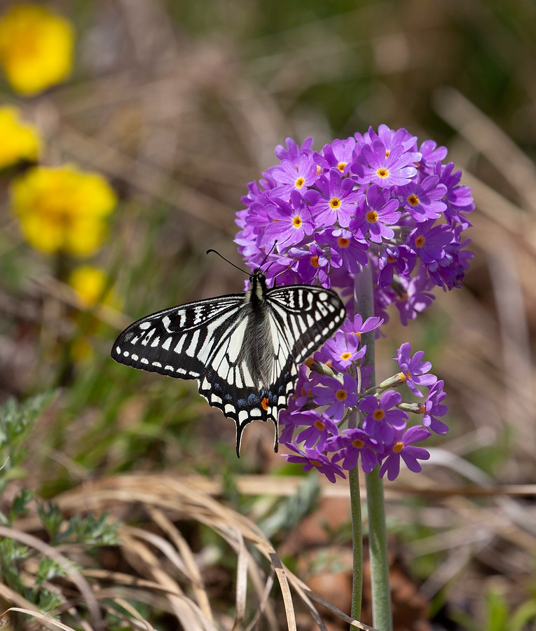 Вчера, когда прогуливался по лесу п поисках парусников Маака, мое внимание привлекло небольшое яко-розовое пятно. Подумал, что это какой-то мусор оставленный гуляющими. Но, когда подошел ближе обнаружил что это цветы примулы (Primula fistulosa). Растение как оказалось впоследствии, довольно редкое. На Плантариуме есть всего лишь несколько снимков. Решил его поснимать. Убрал все мешающие прошлогодние травинки и сделал несколько фото. Затем пошел себе дальше в поисках Маака. Прогуливаясь вдоль дорожки туда-сюда увидел, что на соцветия присел Ксут. Подошел по возможности ближе. Удалось сделать несколько снимков прежде, чем он меня заметил и спешно улетел. Очень удачно я убрал мусор от растения. Попробовал посидеть недалеко от этого места, но за пол часа никто больше не польстился на цветочный нектар примулы. Хотя пролетали рядом и Мааки и изредка Ксуты.
